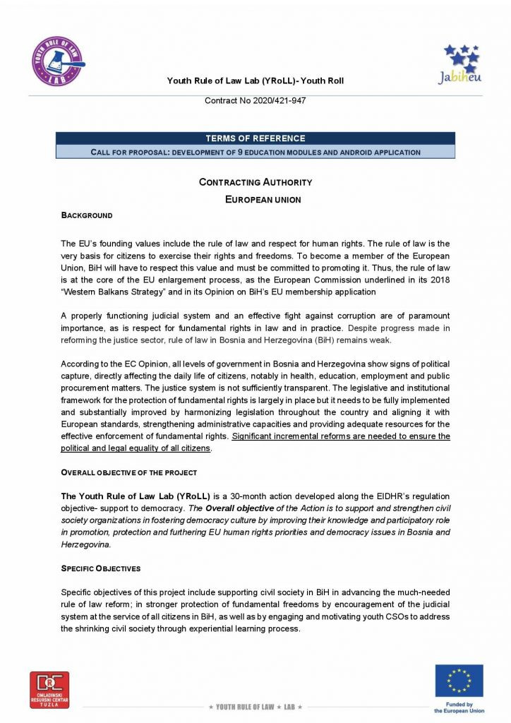 The Project is funded by the European Union and Council of Europe programme “Horizontal Facility for the Western Balkans and Turkey 2019-2022” and its action on “Prevention and combating trafficking in human beings in Bosnia and Herzegovina”. The Terms of Reference is enclosed.