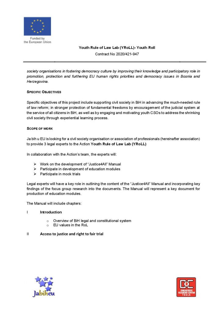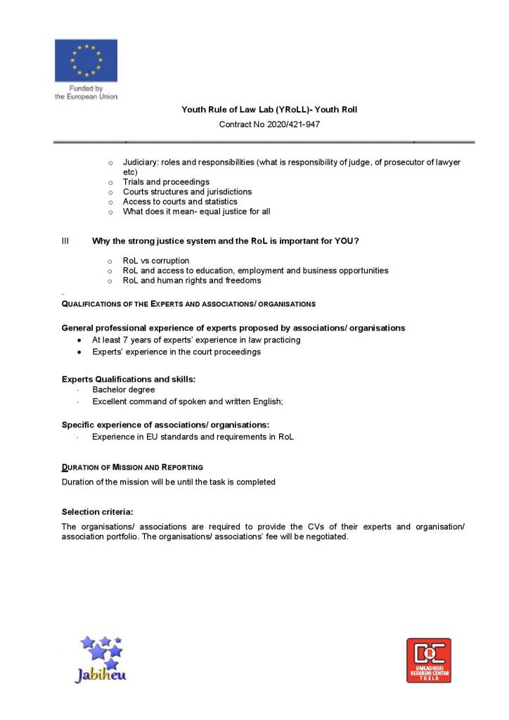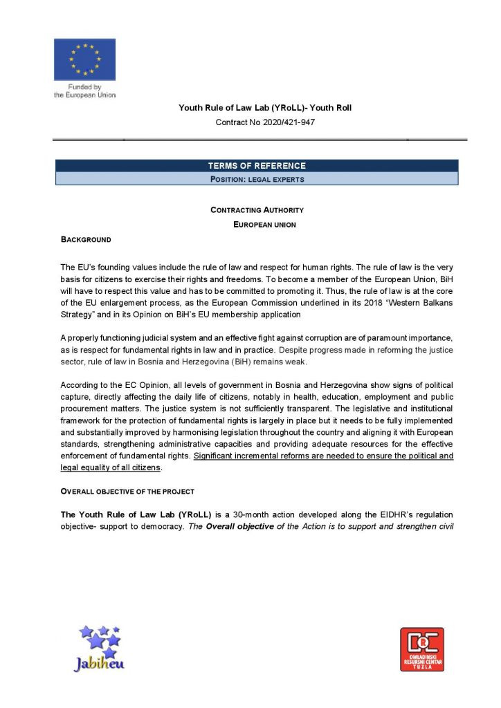 Call for Proposal: Legal experts for the Project “The Youth Rule of Law Lab”
