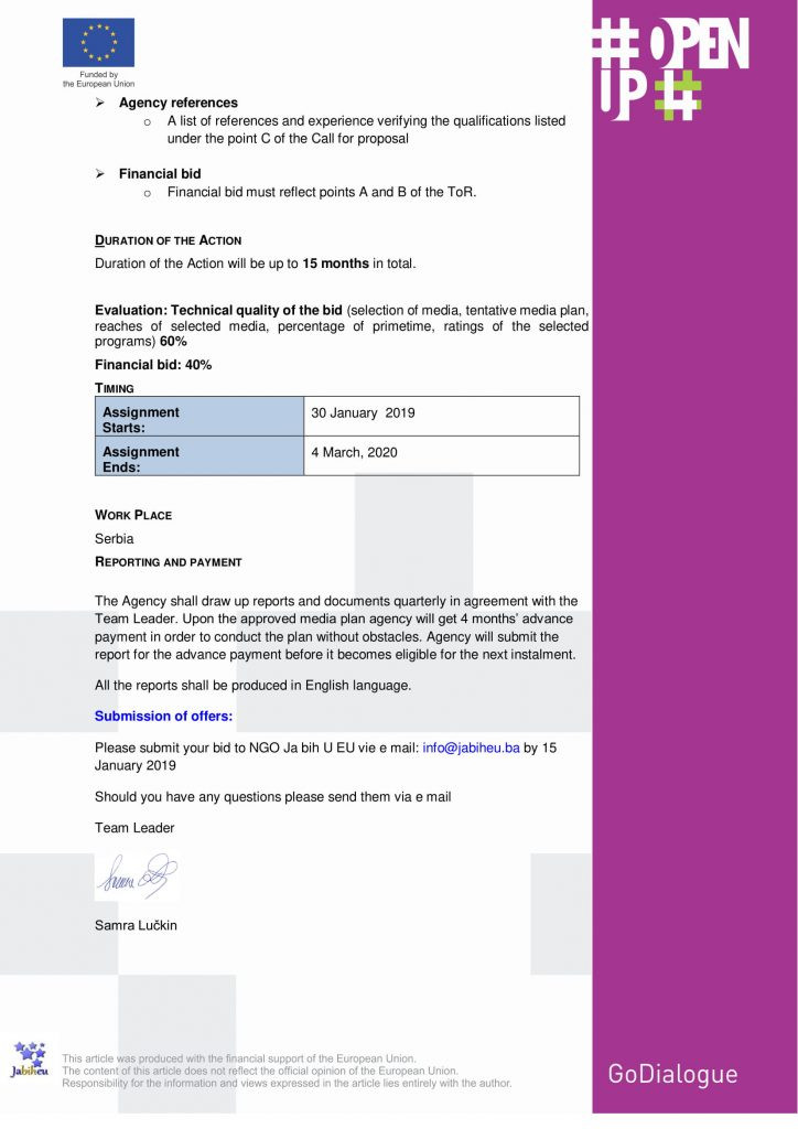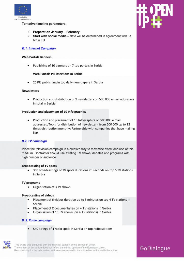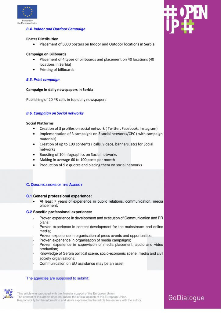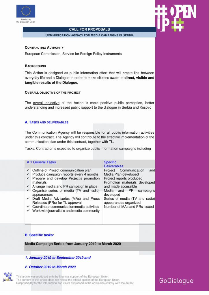 CALL FOR PROPOSALS: COMMUNICATION AGENCY FOR MEDIA CAMPAIGNS IN SERBIA