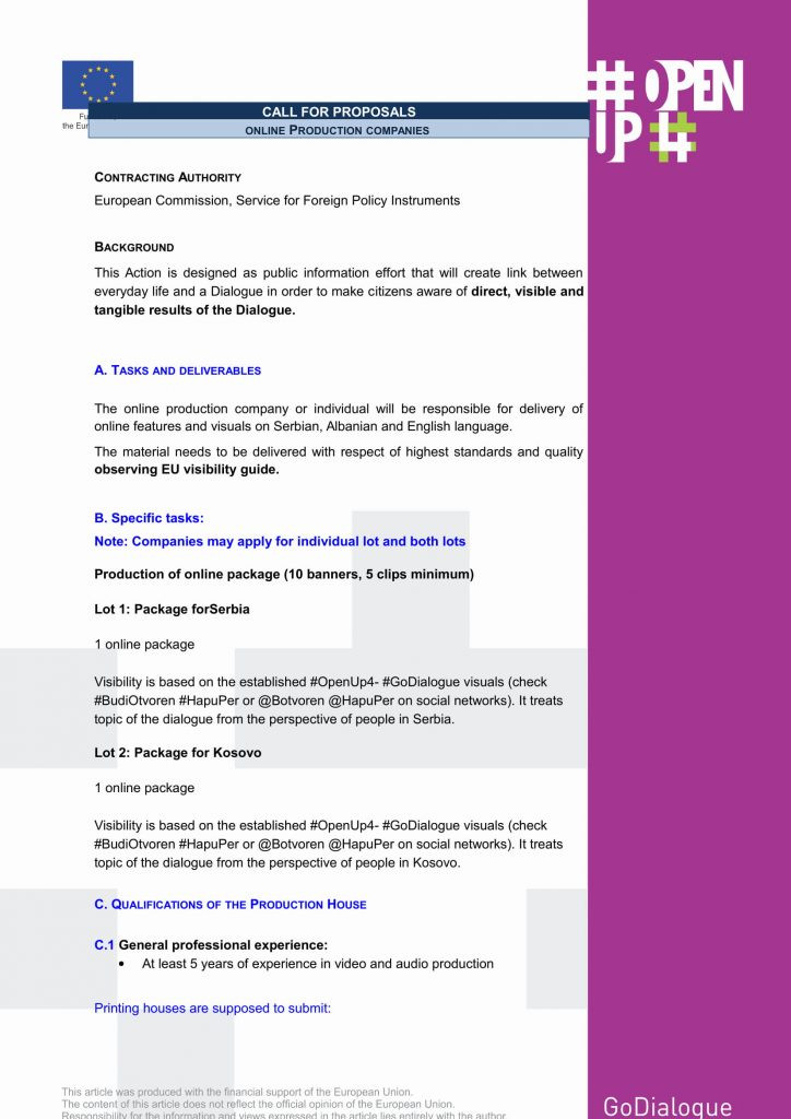 CALL FOR PROPOSALS ONLINE PRODUCTION COMPANIES