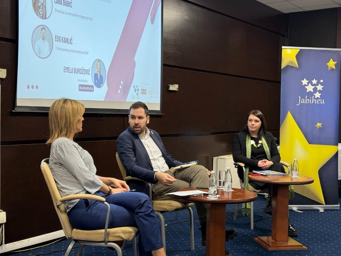 Panel je moderirala Emela Burdžović, dok su panelisti bili Lana Babić iz Direkcije za evropske integracije BiH i Edo Kanlić iz Transparency International BiH, koji su iz različitih perspektiva govorili o saradnji institucija, medija i civilnog društva u procesima zagovaranja.