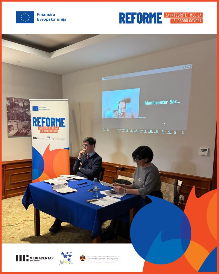 Projekat Reforme za integritet medija i slobodu govora implementiraju Mediacentar Sarajevo, Udruženje JaBIHEU i Vijeće za štampu i online medije u BiH, a finansira Evropska unija u BiH.