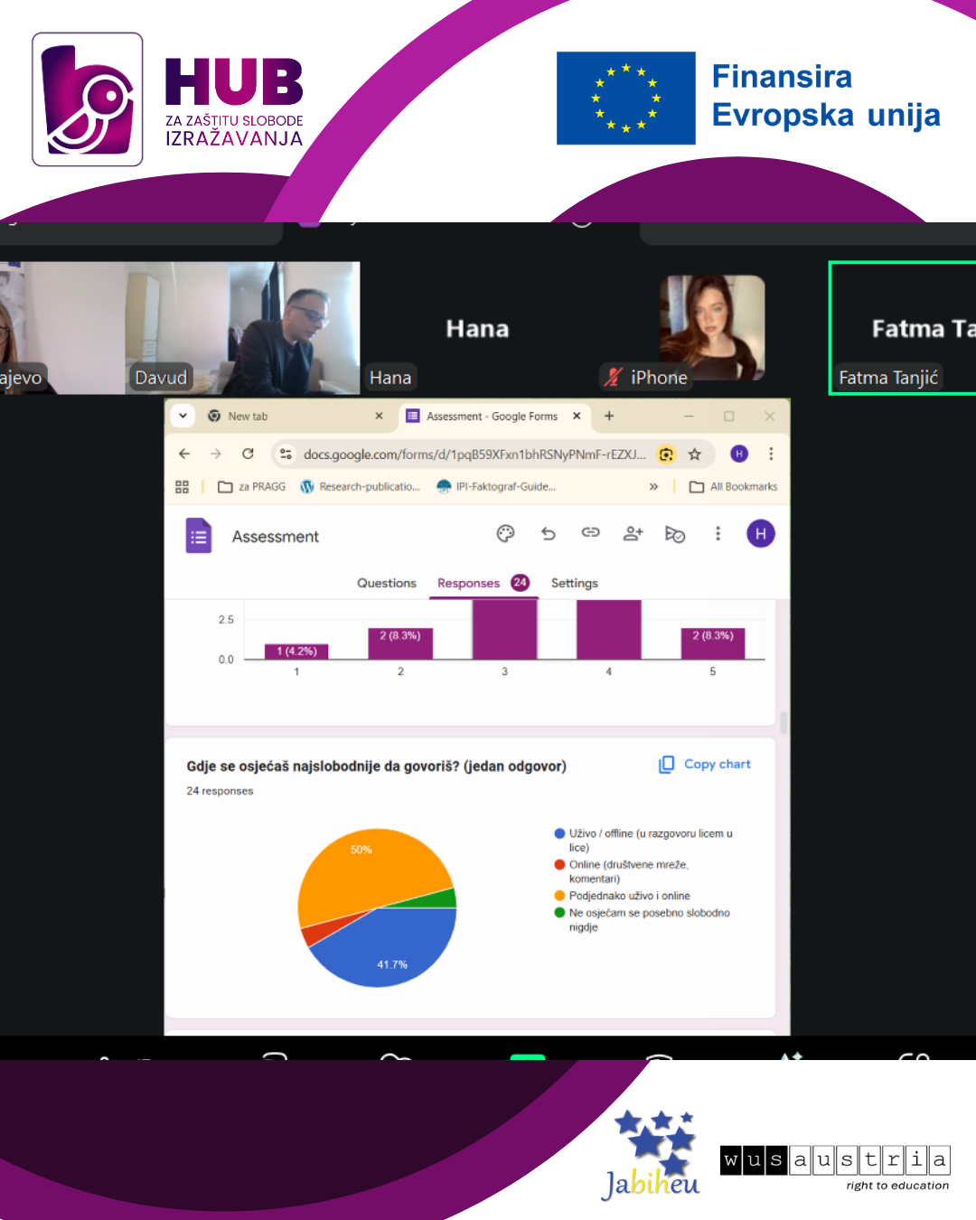 U okviru aktivnosti projekta “HUB za zaštitu slobode izražavanja” organizovan je online panel koji je moderirao novinar David Muminović, s ciljem da se kroz otvoreni dijalog sa mladima i analizu rezultata pripremne ankete mapiraju ključni izazovi s kojima se mladi danas suočavaju u oblasti slobode izražavanja, ali i da se zajednički definišu prioritetne teme za izradu preporuka za donosiocime odluka.