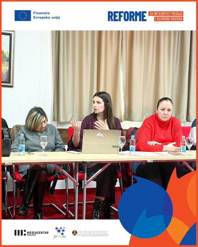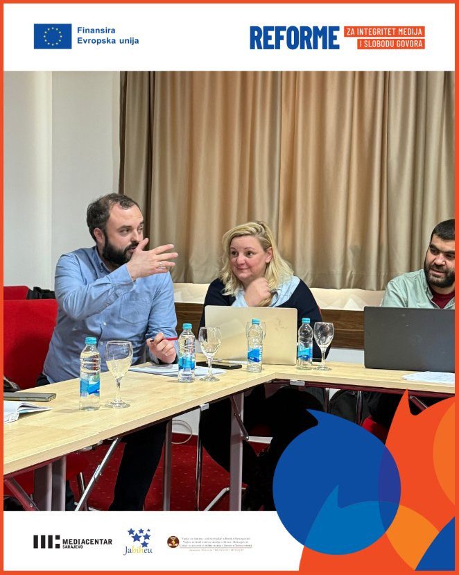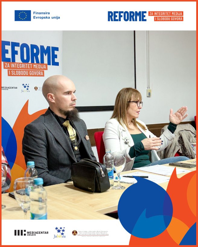 Projekt „Reforme za integritet medija i slobodu govora“ implementiraju Mediacentar Sarajevo, Udruženje JaBiHEU i Vijeće za štampu i online medije u BiH, uz finansijsku podršku Evropske unije u Bosni i Hercegovini.